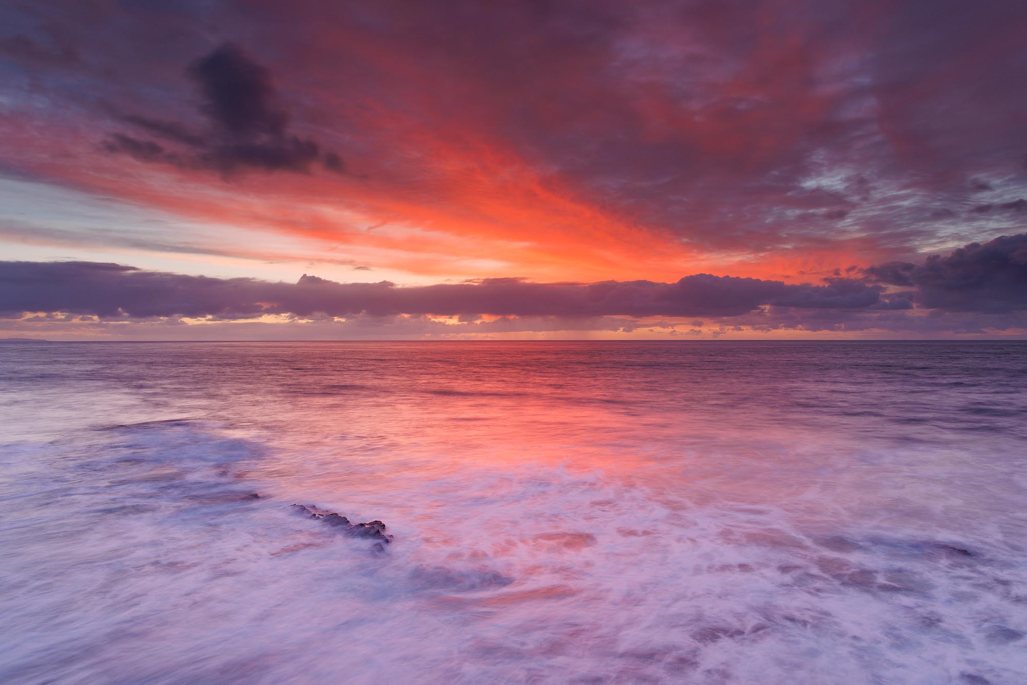 Winter skies along the coast can be wonderfully dramatic, and the windier days often reveal the rugged character of Peveril Point at its best. On this morning a fiery burst of colour lit up the sky and washed across the incoming tide, creating a striking and atmospheric scene.